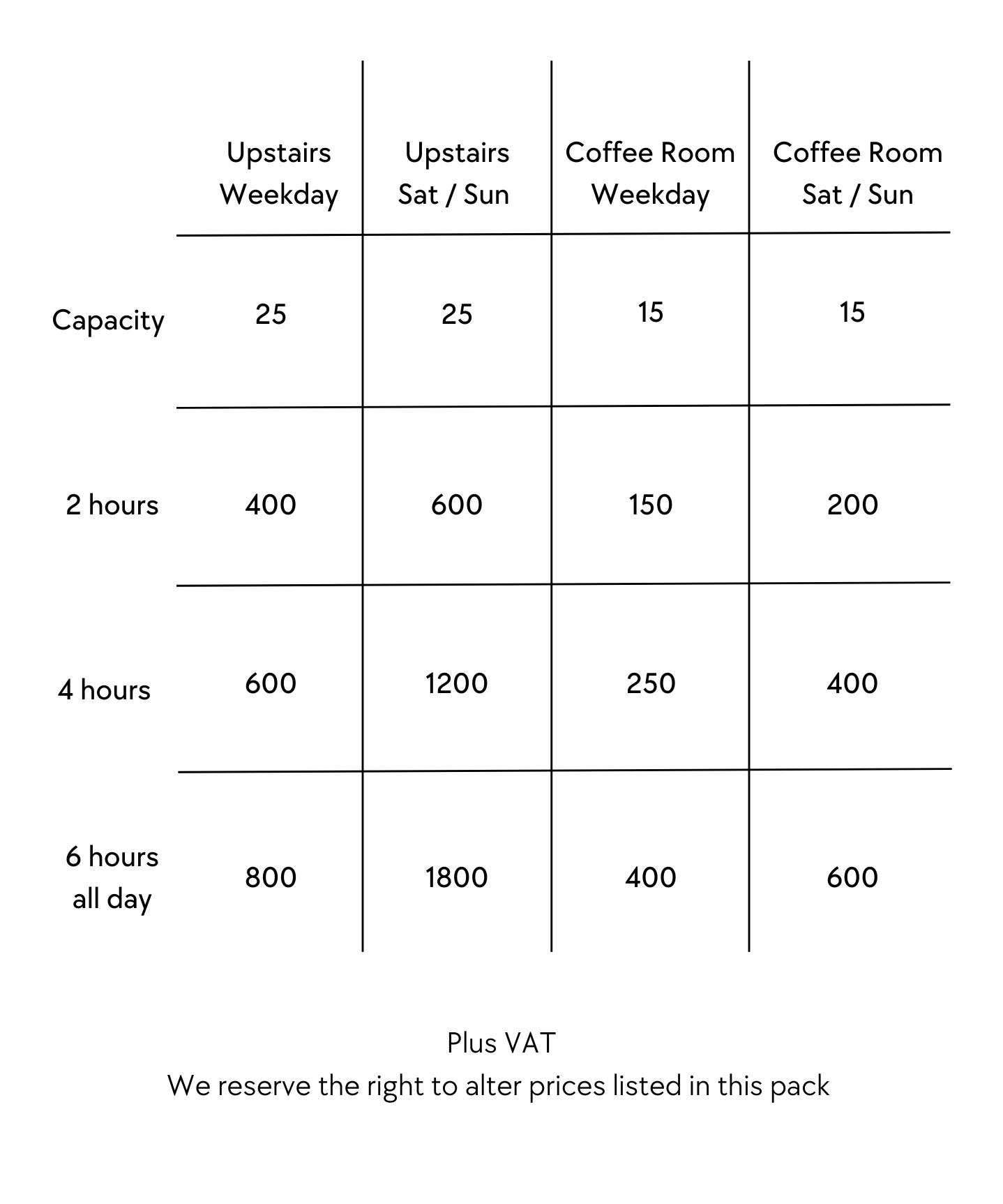 Prices start at £28 plus VAT £35 inc VAT